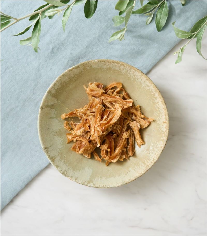 鶏の胸近くにある希少部位のやげん軟骨を温風にて長時間乾燥させて仕上げました。 やげん軟骨はコラーゲンやタンパク質が豊富でコリコリとした食感の程よい硬さで、歯石予防にもなり嗜好性抜群です。 しかもヘルシーなのでダイエット中のおやつにもおすすめです。