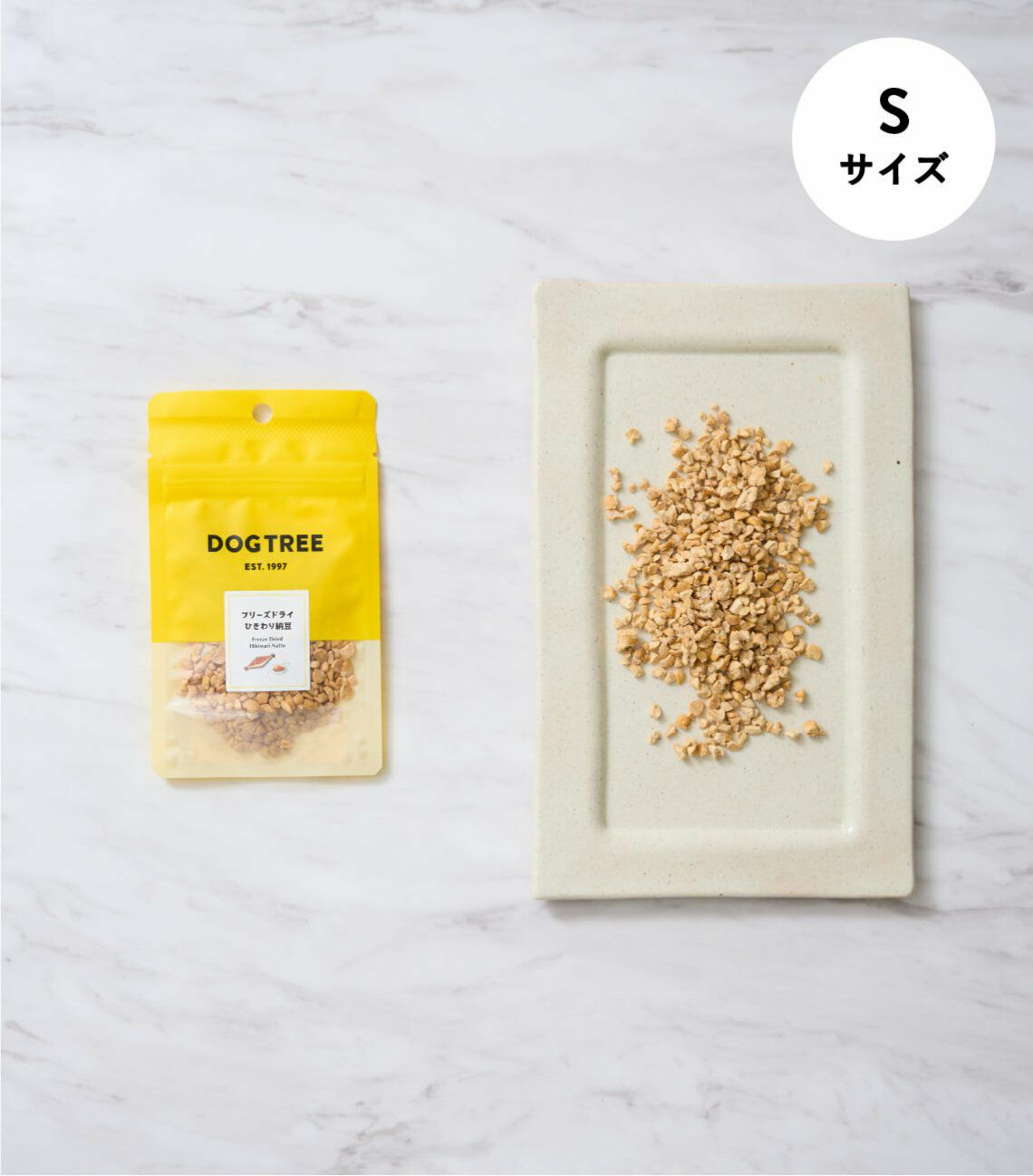 生きている納豆菌パワーが健康な毎日をサポート! 国産・無添加・遺伝子組み替え大豆不使用の納豆をフリーズドライ加工しました。納豆の豊富な栄養がそのまま詰まっているので栄養補給や毎日のごはんのトッピングとしてもおすすめです。強い匂いや糸引きもないのでいつでも手軽に与えられます。 トッピングしやすいひきわりタイプ。 ※たまに納豆の粉が混じっている場合があります。トッピングやふりかけにして美味しくご利用ください。