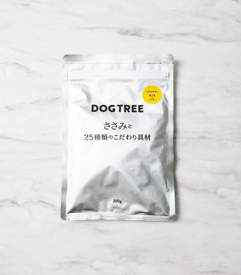 主原料は生ささみ。関節サポートの緑イ貝、大豆から作ったABM乳酸菌、スーパーフードのモリンガ、口臭ケアのシャンピニオン粉末など、厳選した25種類の具材を使用しています。