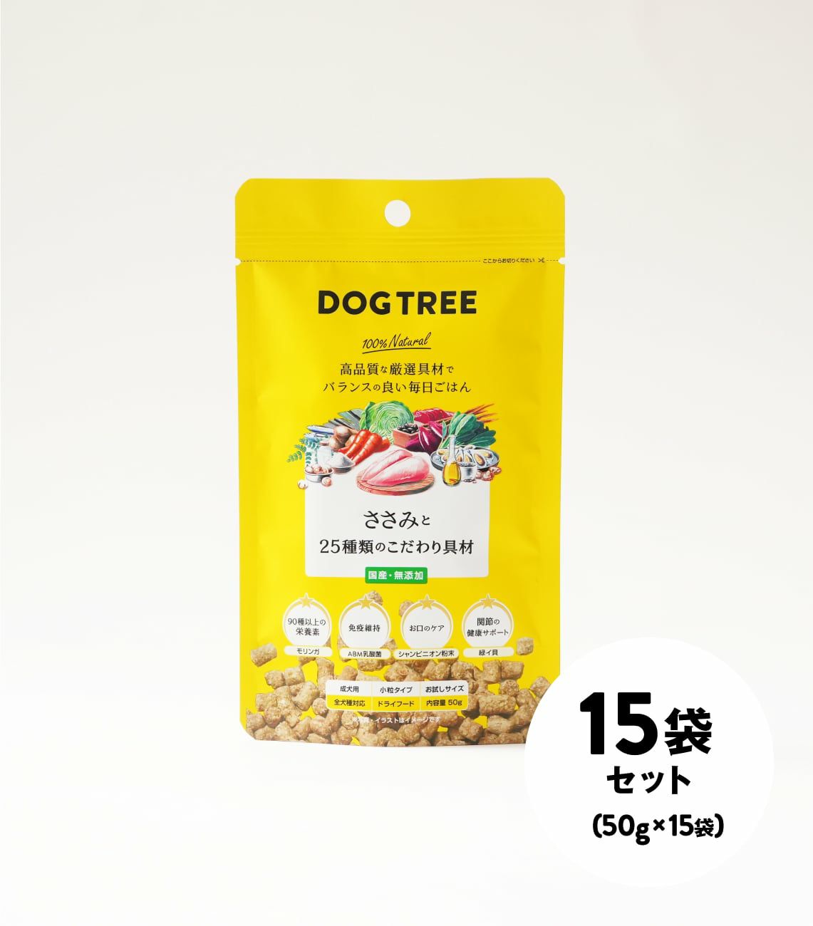 ■特長 ・原材料すべてがこだわり具材 主原料は生ささみ。関節サポートの緑イ貝、大豆から作ったABM乳酸菌、スーパーフードのモリンガ、口臭ケアのシャンピニオン粉末など、厳選した25種類の具材を使用しています。