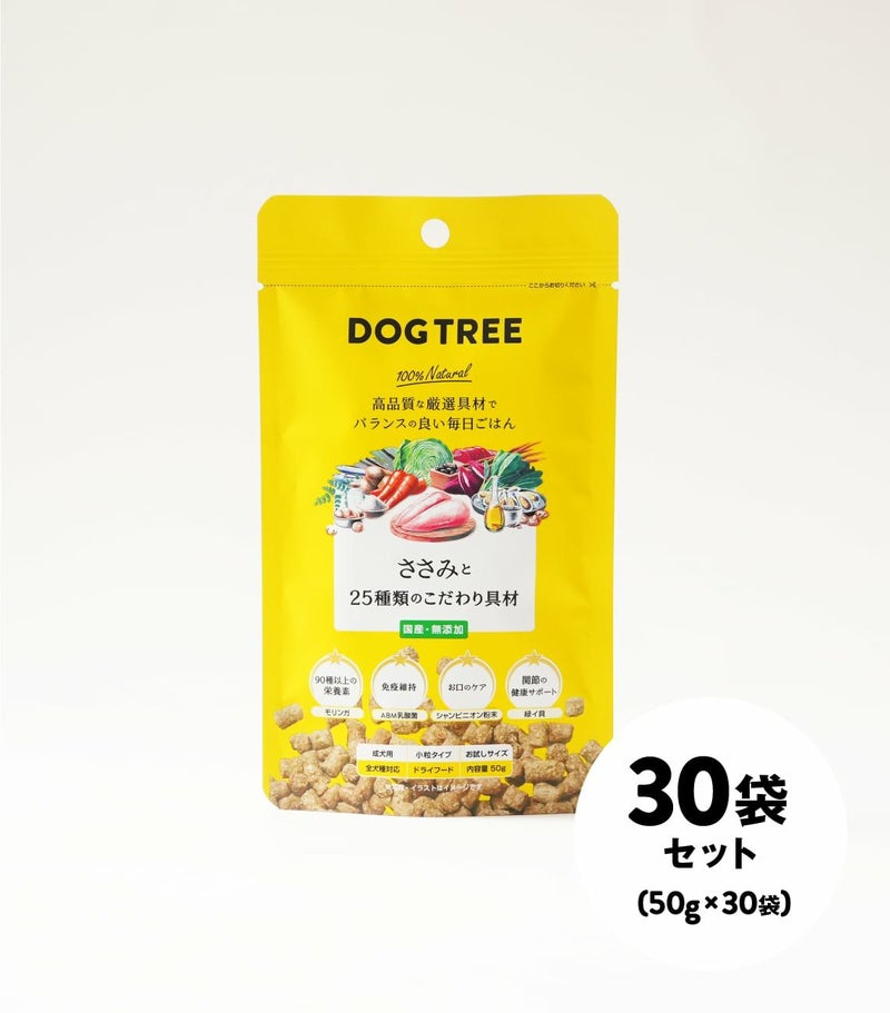 ■特長 ・原材料すべてがこだわり具材 主原料は生ささみ。関節サポートの緑イ貝、大豆から作ったABM乳酸菌、スーパーフードのモリンガ、口臭ケアのシャンピニオン粉末など、厳選した25種類の具材を使用しています。
