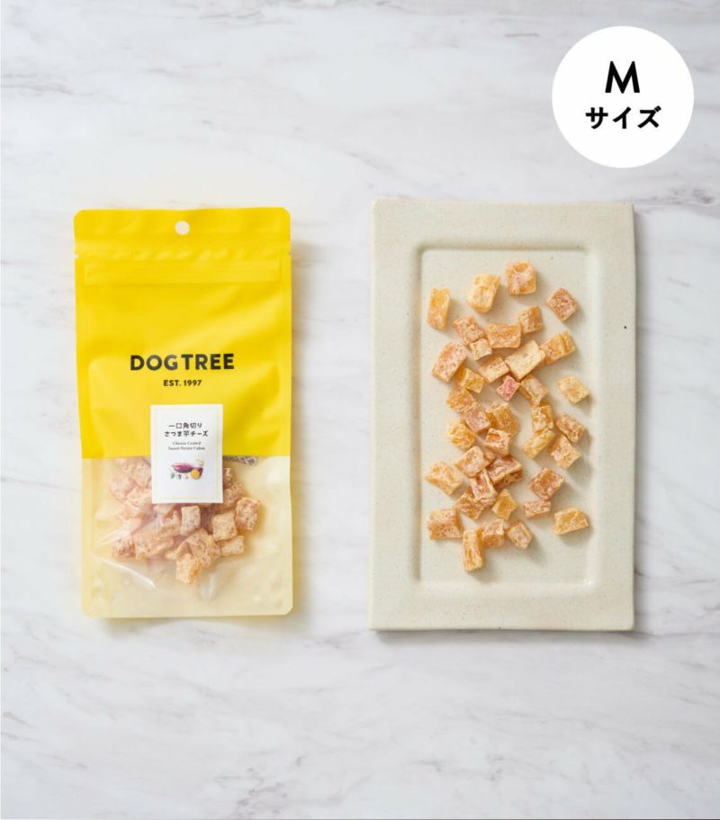 約1.5cmの一口サイズに角切りにしたさつまいもにチーズをコーティングして乾燥させました。 食物繊維とカルシウムが一度に摂れて、しかも嗜好性抜群のおやつです。食物繊維やビタミンC・Eなど栄養素が豊富。 一口サイズなのでお出かけのお供や、ご褒美おやつ・トレーニングのおやつ・フードのトッピングとしてもおすすめです。 安心安全な国産おやつです。