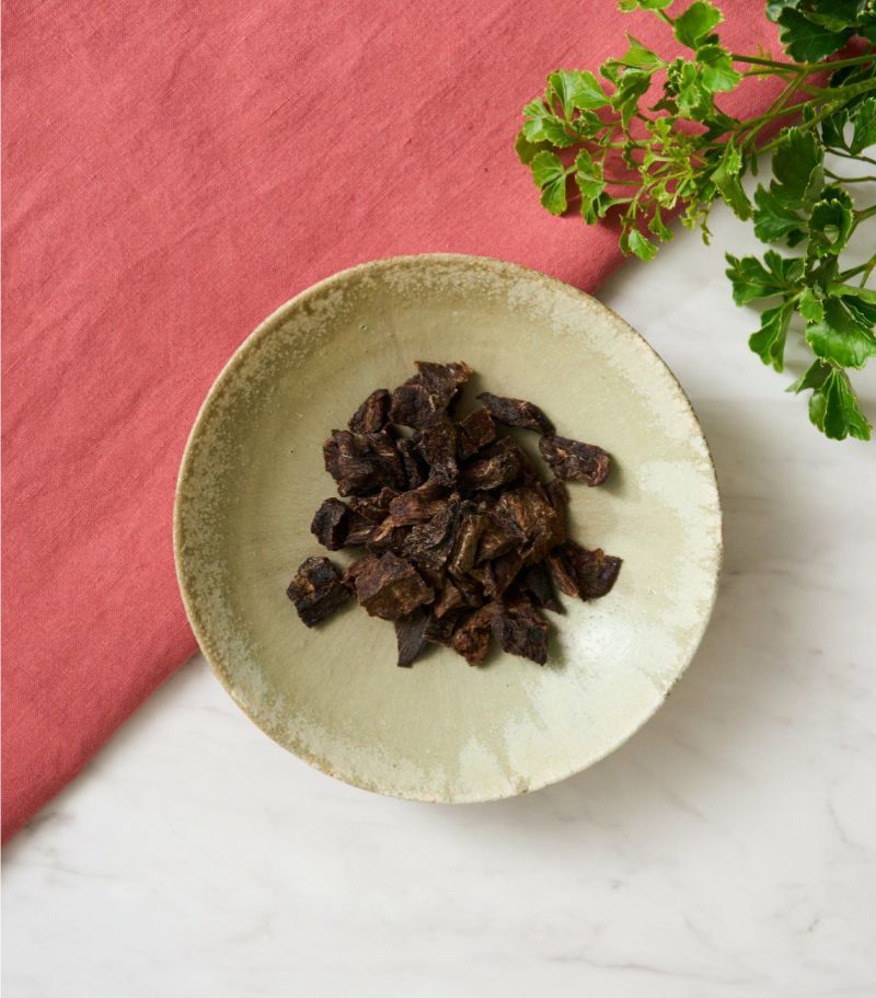 馬肉を独自製法でじっくりと乾燥させ、約1.5cmの角切りにしました。 馬肉は高タンパク、低脂肪、低カロリーです。 一口サイズなのでお出かけのお供や、ご褒美おやつ・トレーニングのおやつ・フードのトッピングとしてもおすすめです。安心安全な国産・無添加おやつです。