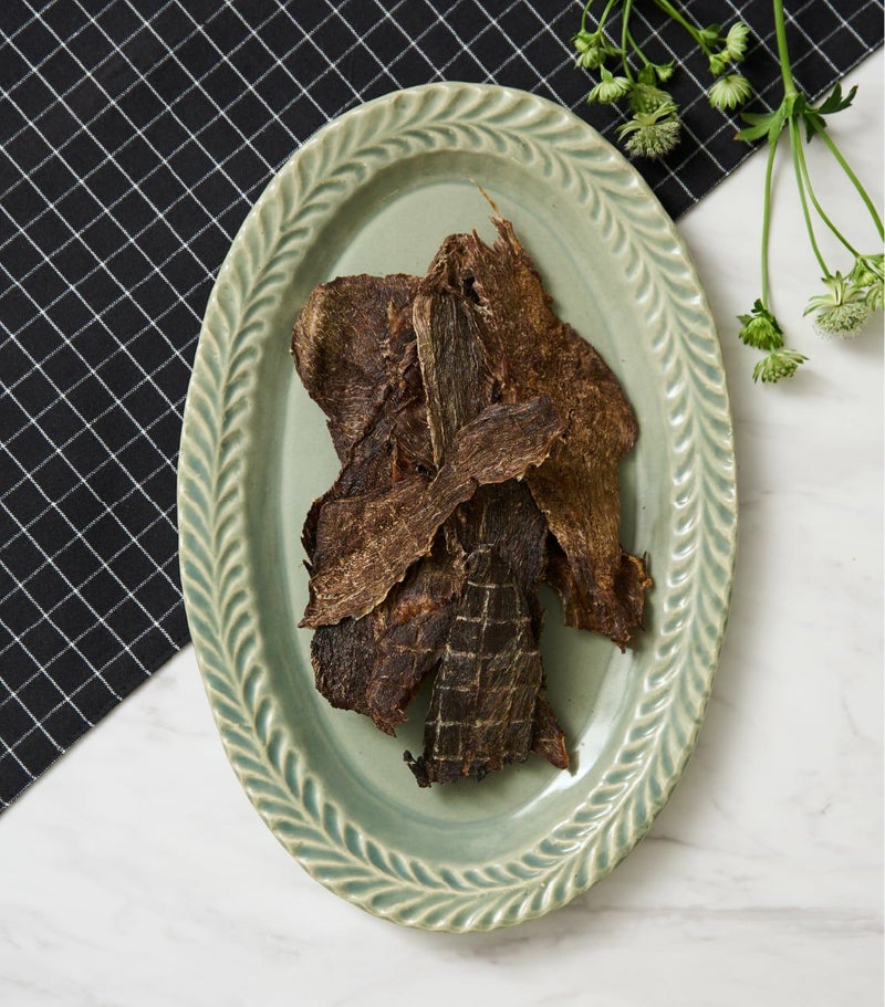 馬肉を独自製法で乾燥させ、スライス状に仕上げました。 馬肉は、高タンパク・低脂肪・低カロリーで、旨味たっぷり栄養たっぷりなお肉です。鉄分やカルシウム、必須脂肪酸が豊富です。また、グリコーゲンやペプチドもほかの肉類に比べ豊富に含まれています。 手で簡単に割ることができるので、トレーニングやご褒美おやつにおすすめです。 お得なロングサイズ袋には、大きなスライス肉が入っています。