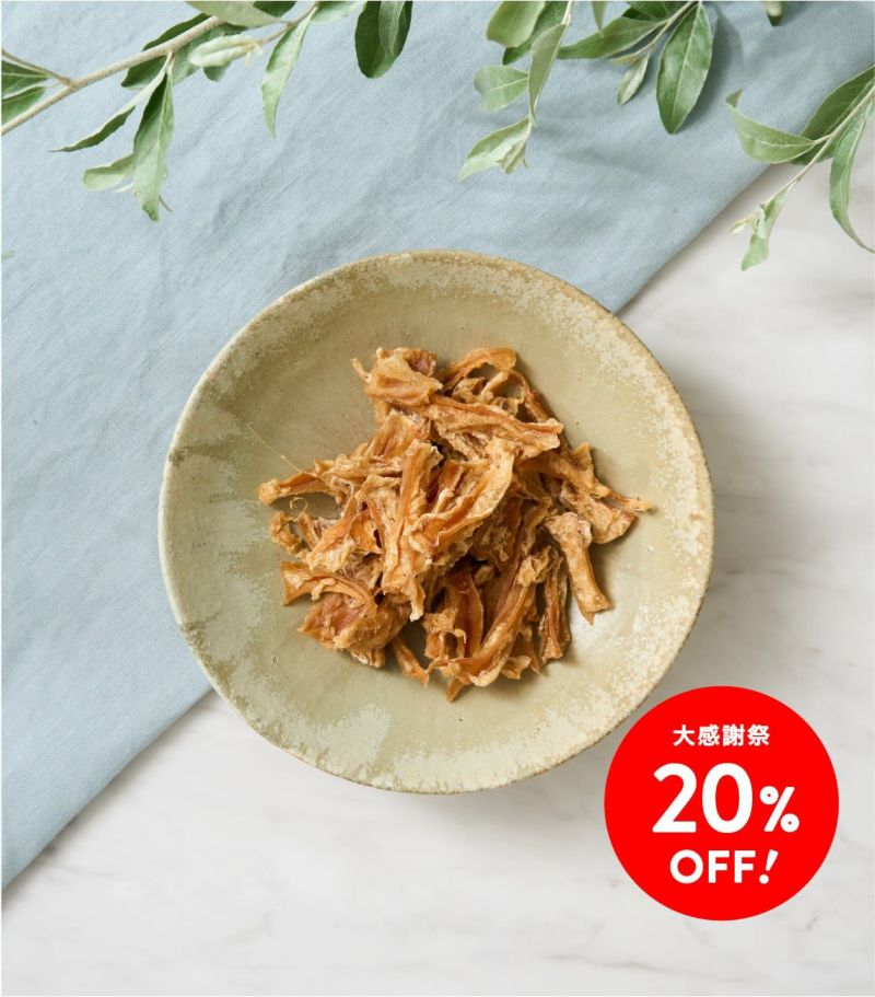 鶏の胸近くにある希少部位のやげん軟骨を温風にて長時間乾燥させて仕上げました。 やげん軟骨はコラーゲンやタンパク質が豊富でコリコリとした食感の程よい硬さで、歯石予防にもなり嗜好性抜群です。 しかもヘルシーなのでダイエット中のおやつにもおすすめです。
