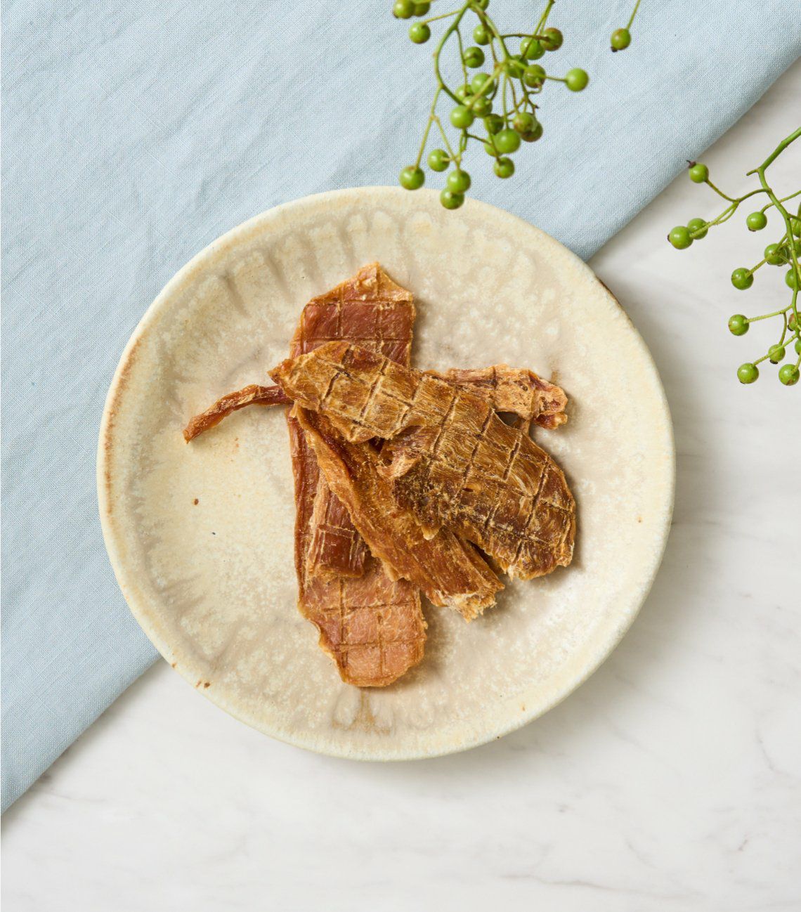犬のおやつといえばジャーキー。厳選した肉や魚の素材を使用し、こだわりの製法で旨味と栄養を凝縮させました。