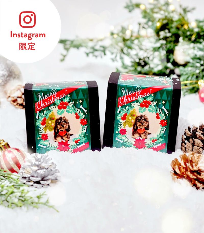 クリスマスデザインのパッケージに愛犬の写真が入リます。2箱セットでのお届けです。 購入前にInstagramへ写真を送付して仕上がりのイメージを確認してください。