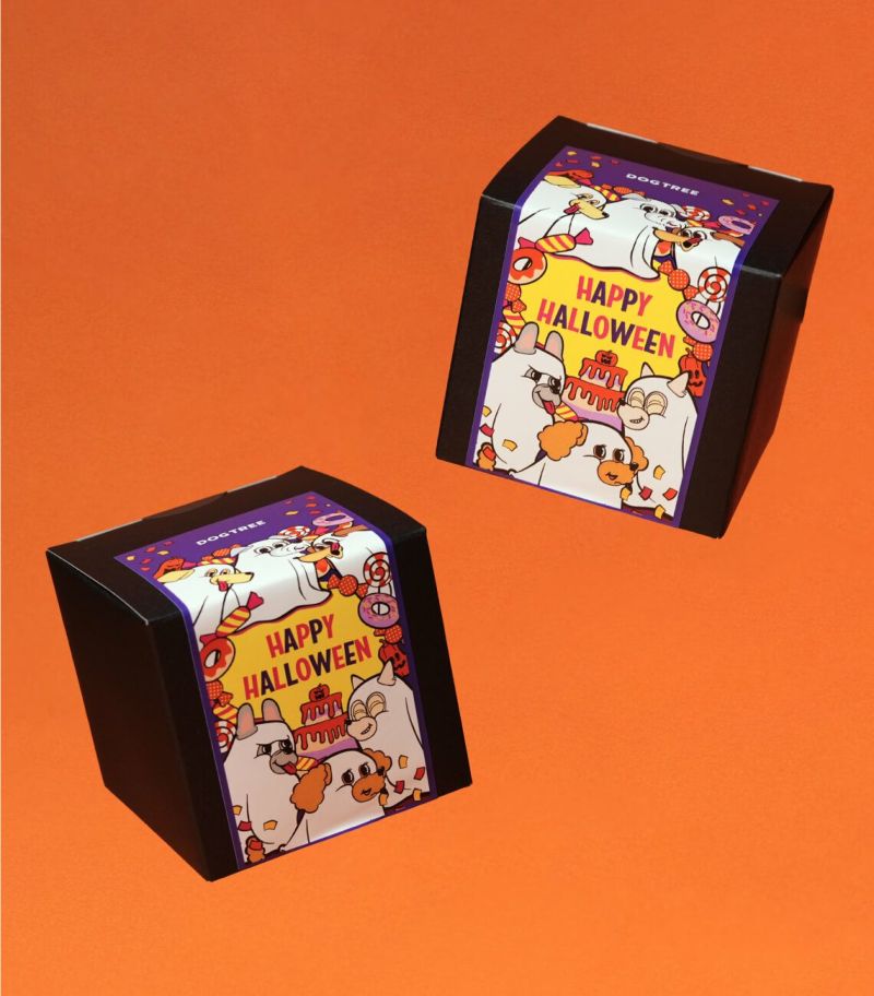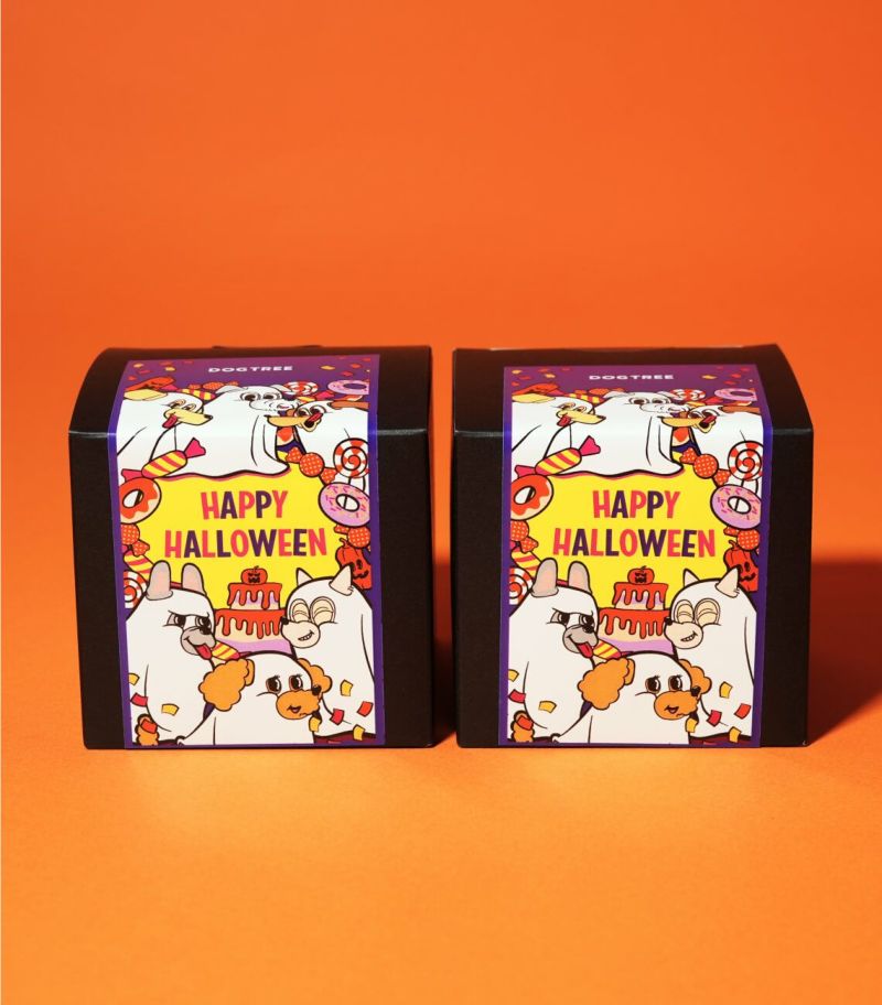 ハロウィン仕様のオリジナルイラストの限定デザインが登場! 2箱セットでのお届けです。 おやつも4種類の中から好みの3個を選べます。選んだおやつ3個が、1箱の中に入ります。