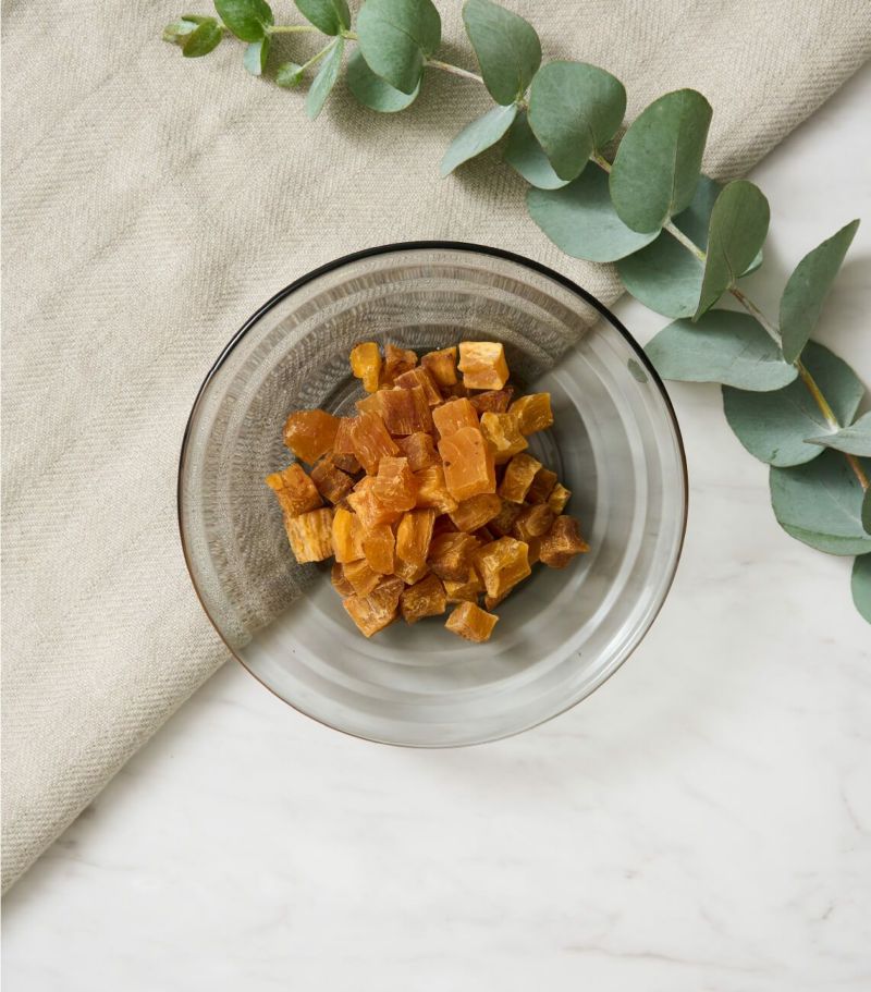 さつま芋を約1.5cmの一口サイズに角切りにしてから焼き芋風に丁寧に仕上げました。 ビタミンC・Eやミネラル、食物繊維が豊富な美味しいおやつです。弾力感と素朴な甘みがわんちゃんの食欲をそそります。 一口サイズなのでお出かけのお供や、ご褒美おやつ・トレーニングのおやつ・フードのトッピングとしてもおすすめです。 安心安全な国産・無添加おやつです。
