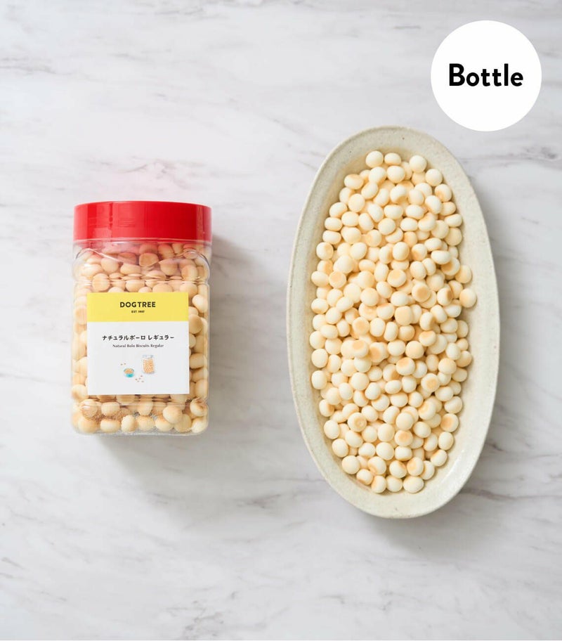 サクサクッホロホロッとした食感とくちどけは育ち盛りのパピーからシニア犬まで全年齢向きの優しいおやつです。中粒のボーロは、トレーニングやご褒美おやつに最適です。