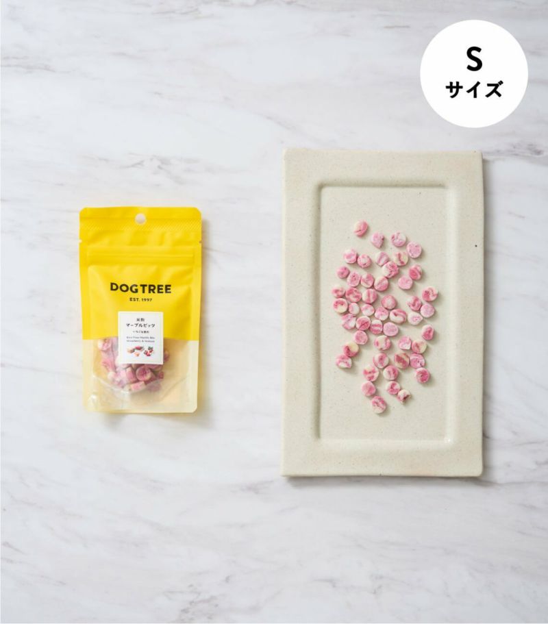 小麦粉・卵・砂糖不使用のグルテンフリー米粉ビッツ。 嗜好性の良い国産の鹿肉パウダーと苺を混ぜ込み、見た目もかわいいマーブル柄に焼き上げました。甘酸っぱい苺と優しい蜂蜜の甘さがわんちゃんを虜にします。カリカリした食感に満足度も上がります。さらに低カロリーでダイエットにぴったり。 安心安全な国産・無添加(着色料、保存料、香料不使用)おやつです。お出かけに便利な小袋入りです。