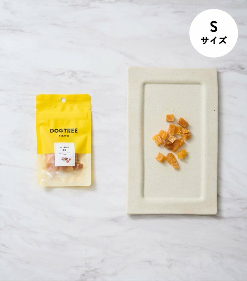 さつま芋を約1.5cmの一口サイズに角切りにしてから焼き芋風に丁寧に仕上げました。 ビタミンC・Eやミネラル、食物繊維が豊富な美味しいおやつです。弾力感と素朴な甘みがわんちゃんの食欲をそそります。 一口サイズなのでお出かけのお供や、ご褒美おやつ・トレーニングのおやつ・フードのトッピングとしてもおすすめです。 安心安全な国産・無添加おやつです。
