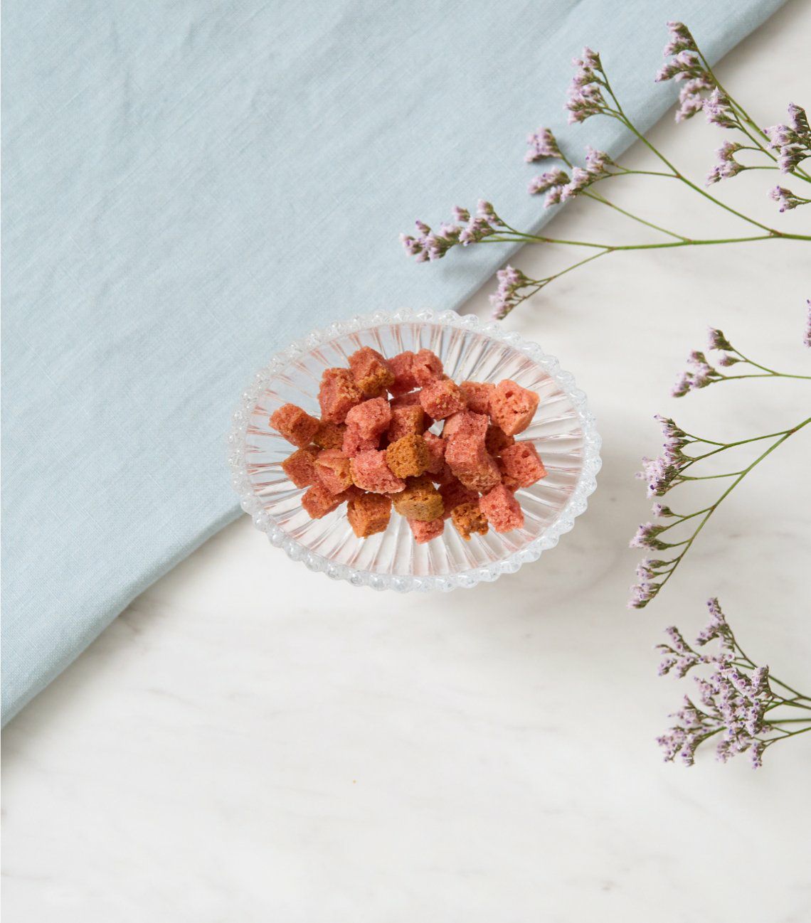 ボーロやフルーツ、お芋など定番のおやつから米粉を使ったグルテンフリーのおやつまで豊富に揃えています。トレーニングやご褒美にも。