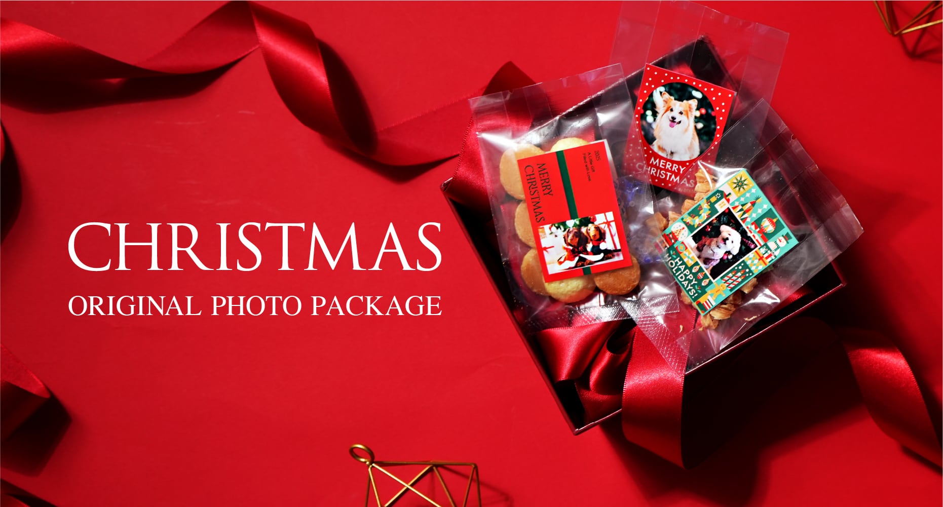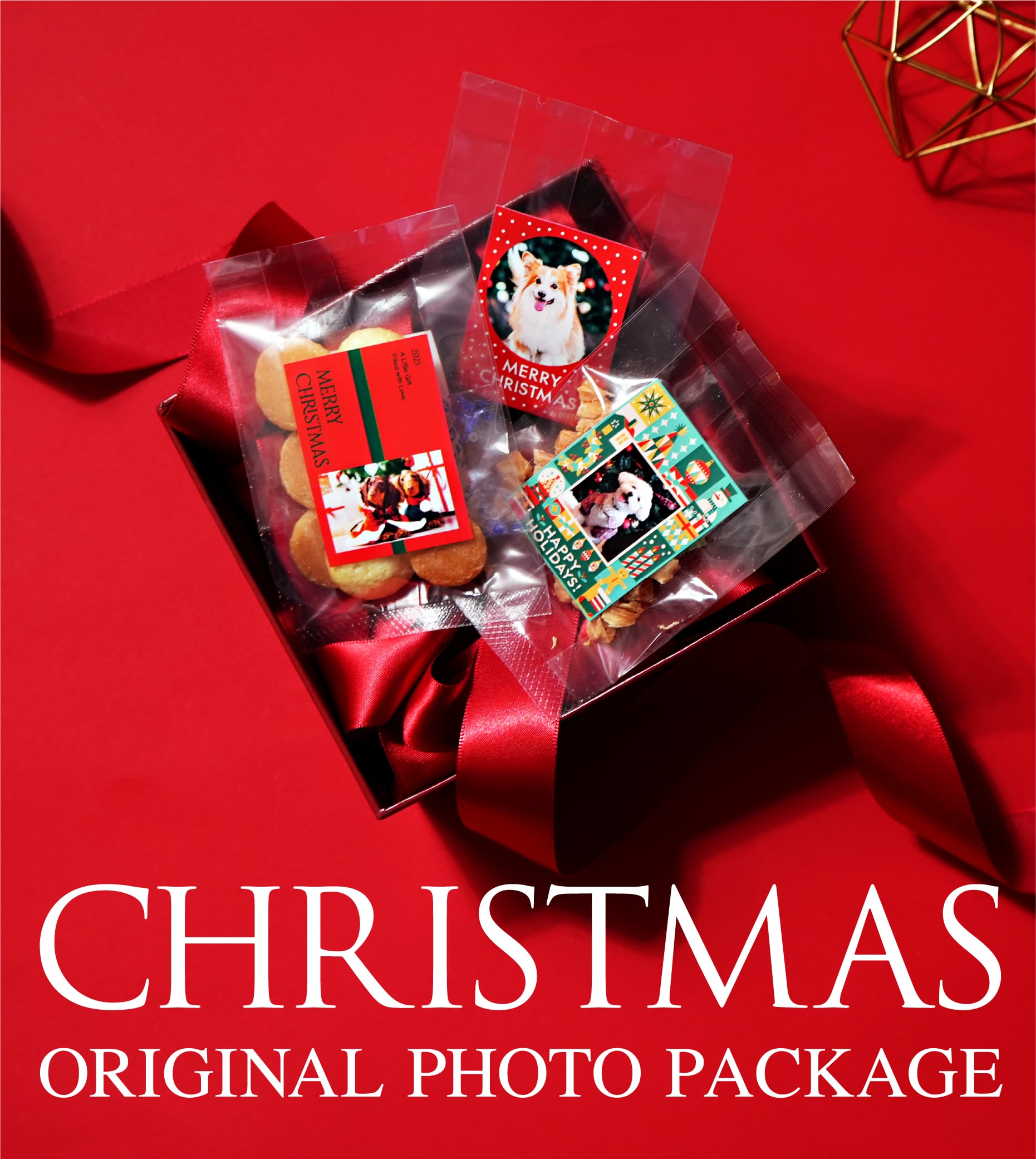 今年の写真が入るクリスマスオリジナルパッケージは、人気おやつ20個セット。