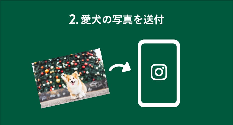 2.ドッグツリーのInstagramアカウント(@dogtree.n.s)へDMで、愛犬の写真(1MB以上の画像推奨)と希望のデザインを送付