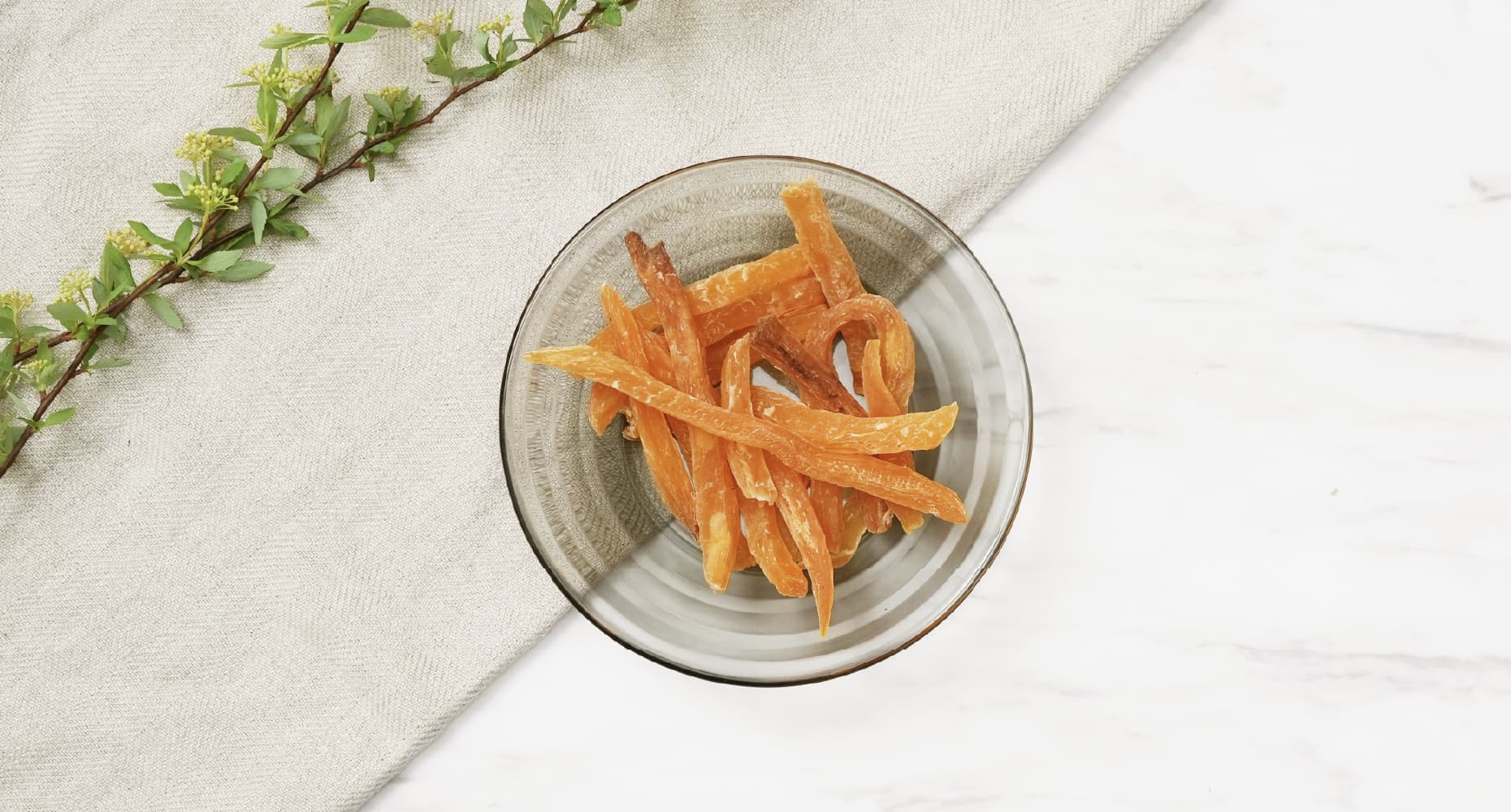 サクサクとした歯ごたえと自然な甘みがワンちゃんに大人気。さつまいもは食物繊維が豊富。