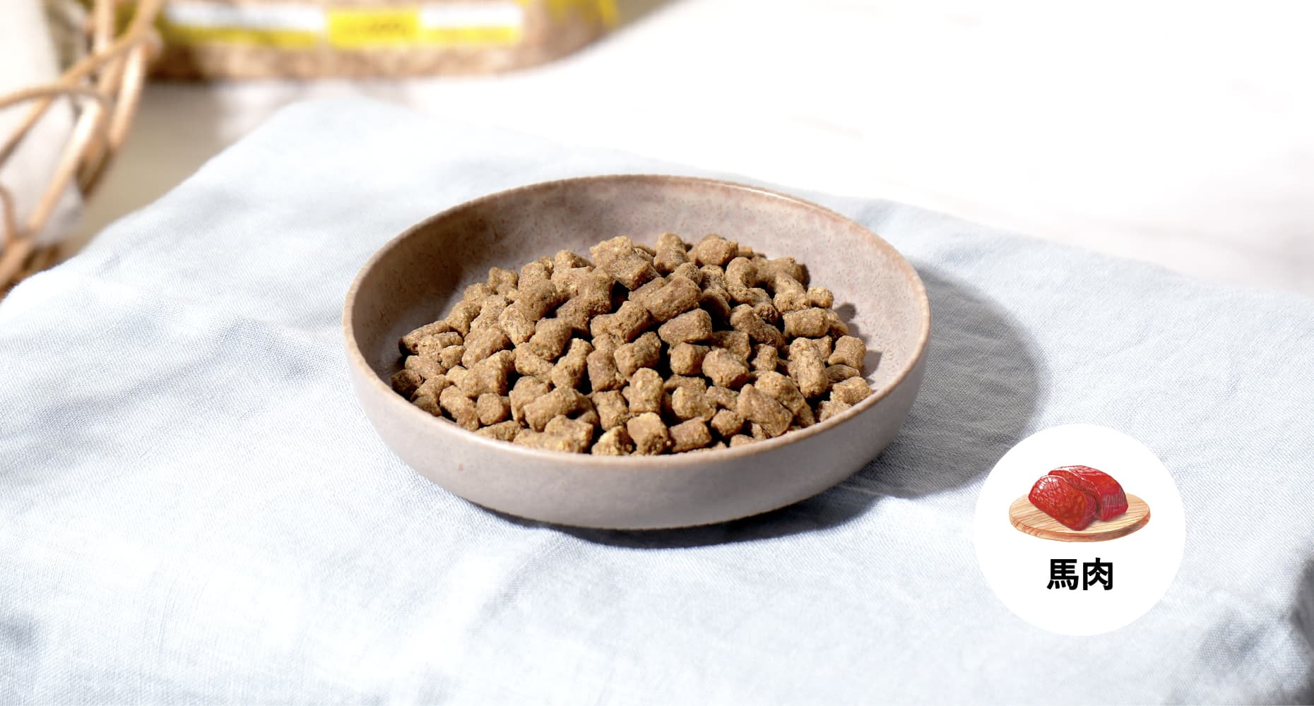主成分は、私達が普段食べている品質の生の馬肉。関節の健康をサポートする緑イ貝、免疫維持のABM乳酸菌、90種以上の栄養素を含むモリンガ、お口のケアにシャンピニオン粉末など、さまざまな栄養素を含む多彩な食材を使用。