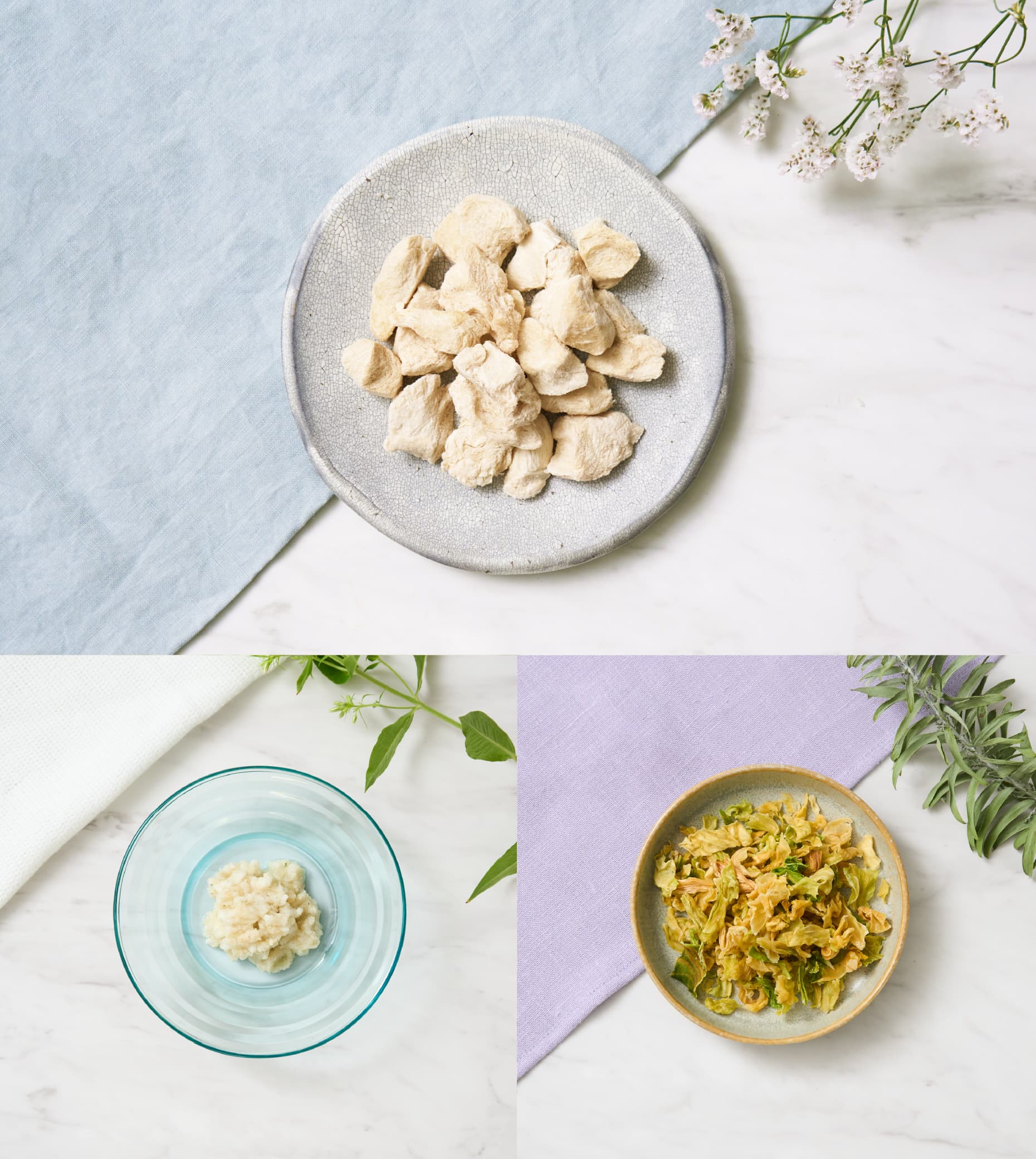 フリーズドライを少量のお湯でふやかしフードの上にトッピングをして食べています。腸の弱い子でも安心して食べることができました。香りもよくお湯が冷めるとスープでごくごくと飲んでいます。水分補給にもなりありがたいです。
