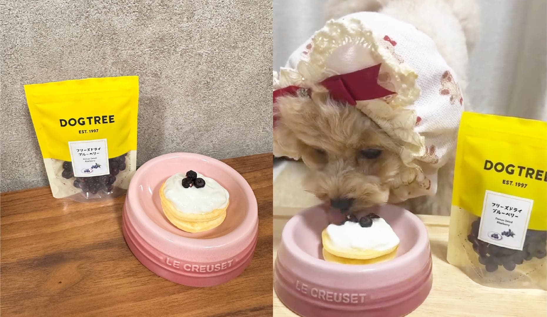 特にとのが気に入って食べてくれました。バナナよりブルーベリーの方がヨダレダラダラで撮影も頑張ってくれました!