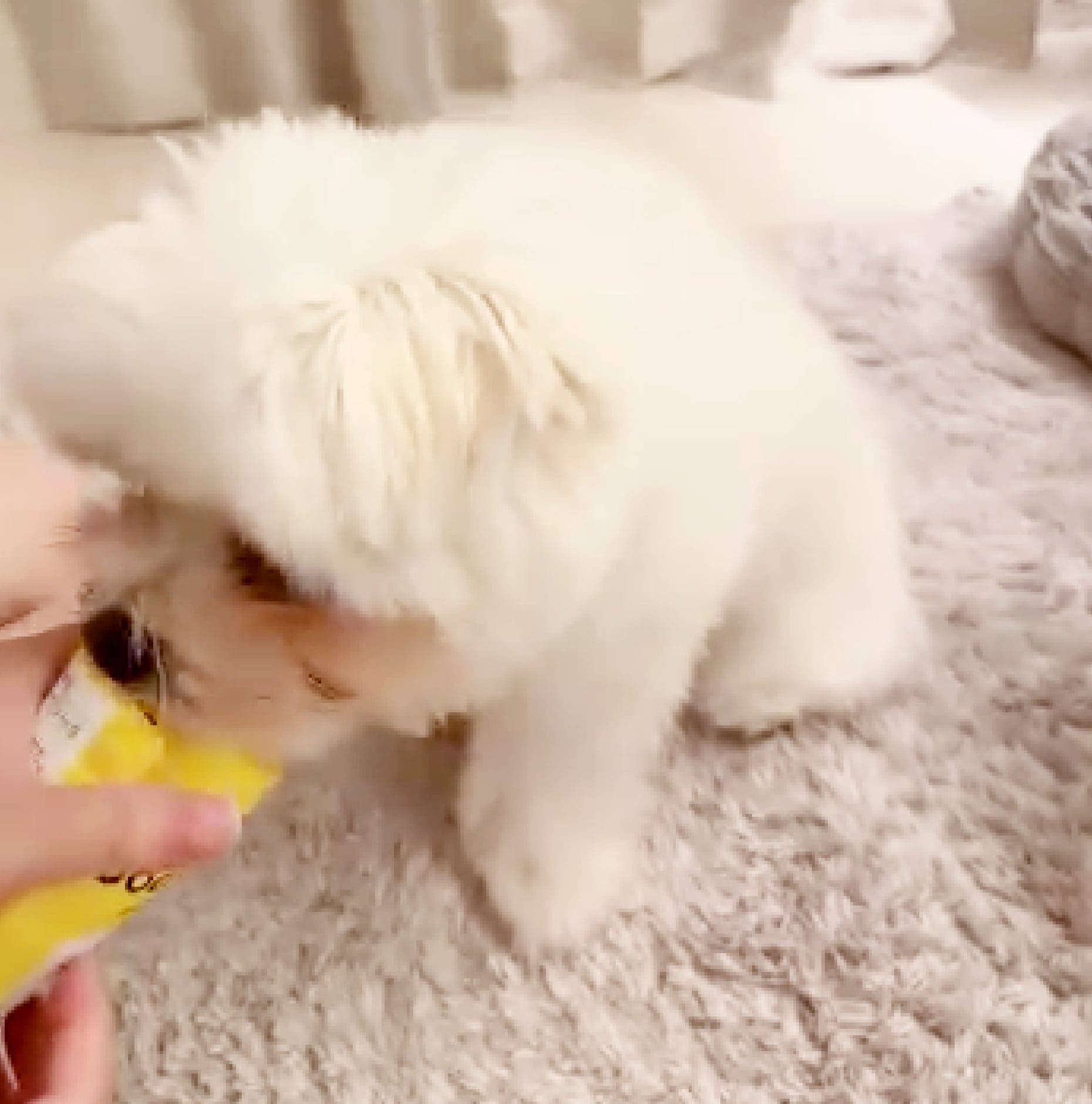 特に、白ポメのリリーが気に入ったみたいでマリーとウリから奪おうとしてました🤭