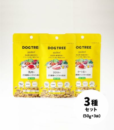 【先着300名様】2周年記念 ドッグフード50g 3種セット(ささみ・馬肉・かつお)のレビューを書く